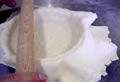 冷凍パイシートは自然解凍して麺棒でのばし、パイ皿に敷き入れる。